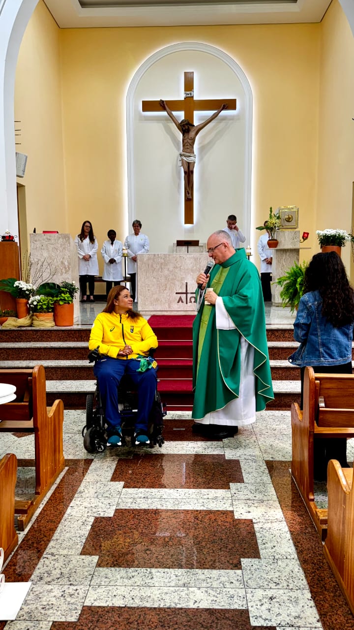 Juliana, atleta paralímpica de tiro com arco, conhecida como “Ju Fênix”, participa em nossa Paróquia e na missa das 12h de domingo contou um pouco da sua história.